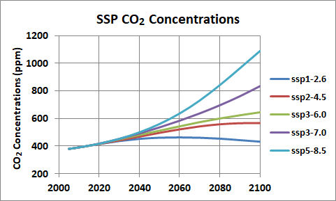 • Assumes a linear relationship between CO2 levels and global temperatures, whereas the actual CO2-warming effect is logarithmic, meaning that each 100 ppm increase in CO2 levels adds less warming than the previous 100 ppm increase. A 100 ppm increase to 600 ppm increases temperatures by 63% of a 100 ppm increase to 400 ppm.